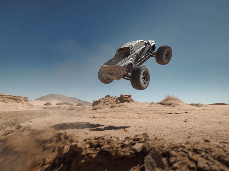 The ARRMA off-road RC car with steel driveshafts and adjustable oil-filled shocks is built to handle punishing terrain. Steel driveshafts run throughout the drivetrain, connecting all-metal diff outdrives and gearbox internals. This heavy-duty configuration ensures reliable torque transfer and long-term durability, even during high-impact landings and full-throttle launches. The drivetrain is supported by a single-speed transmission with forward, brake, and reverse functionality, allowing precise control across varied surfaces. Whether you're navigating rocky trails or blasting through loose dirt, the drivetrain components are engineered to withstand the demands of 6S brushless power.
