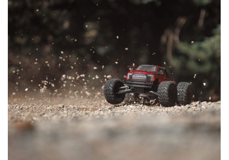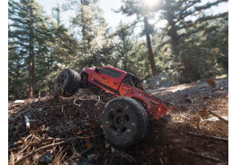The ARRMA off-road RC car with steel driveshafts and RAGNAROK tyres is built to handle punishing terrain. Steel driveshafts run throughout the drivetrain, connecting all-metal diff outdrives and gearbox internals. This heavy-duty configuration ensures reliable torque transfer and long-term durability, even during high-impact landings and full-throttle launches. The drivetrain is supported by a single-speed transmission with forward, brake, and reverse functionality, allowing precise control across varied surfaces. Whether you're navigating rocky trails or blasting through loose dirt, the drivetrain components are engineered to withstand the demands of 6S brushless power.
