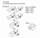 - 2 × 2S, 2 × 3S, 1 × 4S, or 1 × 6S hardcase LiPo battery (minimum 5000mAh 50C)
