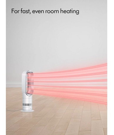- Design: Dyson bladeless fan heater with sleek white and nickel finish