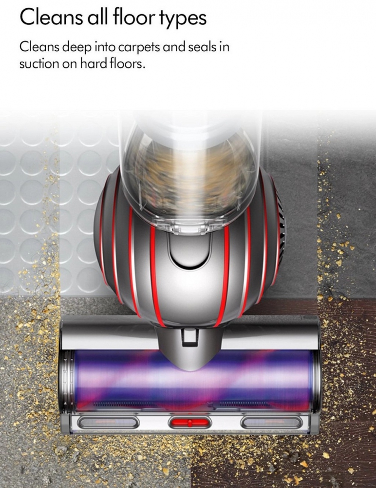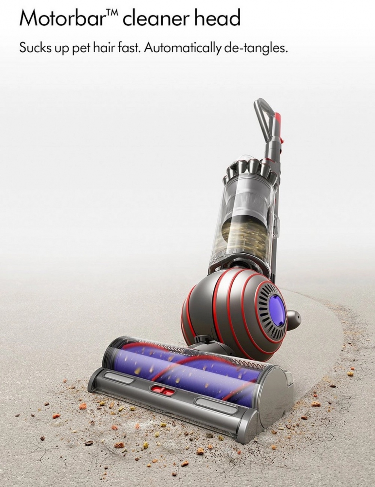 This Dyson animal upright hoover nickel silver features a Motorbar cleaner head that actively lifts stubborn pet hair, while built-in vanes automatically remove tangled strands from the brush roll. Combined with Radial Root Cyclone™ technology, it ensures strong, consistent airflow to capture microscopic dust and allergens without loss of suction.