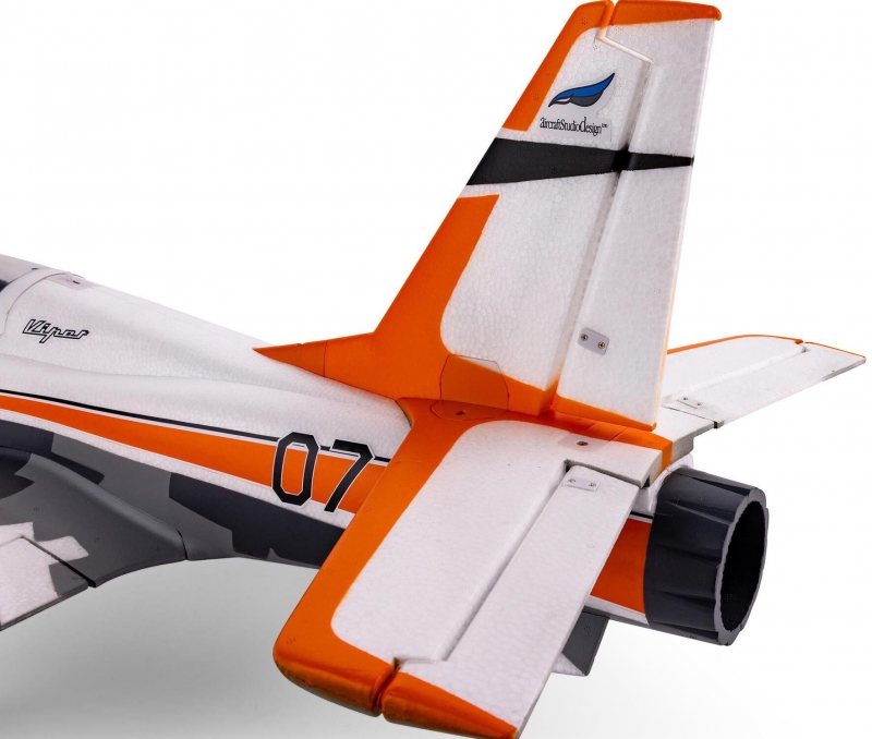 The Viper is built from durable, composite-reinforced EPO foam with a factory-applied finish and vivid trim scheme. It includes functional slotted flaps for better low-speed control, and LED navigation and landing lights for enhanced visibility and scale realism.