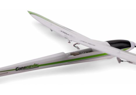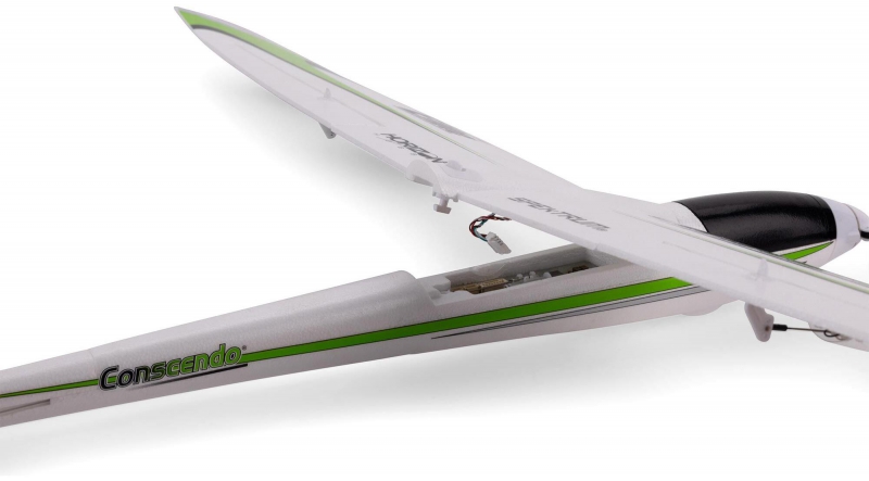 Whether you're a low-time pilot looking for your next airplane after learning to fly with a trainer, or an experienced pilot interested in an ultra-micro sized version of the incredibly popular Conscendo Evolution 1.5m, the E-flite UMX Conscendo is an easy and extremely fun to fly sport aerobatic motor glider that offers a flying experience you simply can't get with any other model! With a 2S LiPo battery, the factory-installed brushless power system - featuring a telemetry-capable ESC, specially-tuned outrunner motor, and folding prop - delivers plenty of thrust for fast climbs to soaring altitude, sport flying, and basic aerobatics. Or, when using a 3S 300mAh battery, it delivers even more speed and thrust for unlimited vertical performance without the need for modifications or upgrades! The composite-reinforced airframe has the strength and stiffness to handle anything experienced pilots will want to do with all that power, performance, and full 4-channel control. Yet the UMX Conscendo is still easy to launch, fly, and land because it features exclusive AS3X and optional-use SAFE Select technologies. Plus, you can enable the optional use flaperons and spoilerons for even more capabilities! Best of all, the UMX Conscendo arrives almost fully factory-assembled and nearly ready to fly right out of the box. Simply install the one-piece wing with the quarter turn thumbscrew, install a charged battery, bind it to your 5+ channel DSMX/DSM2 equipped Spektrum transmitter and you're ready to fly!"