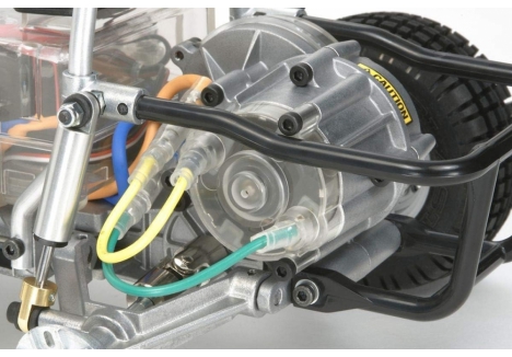 This 2009 version, The Buggy Champ has been carefully updated while maintaining the original features of the chassis such as the unique front double trailing arms and rear torsion suspension. R/C fans hearts will definitely race when they see the nostalgic shape and relive the dynamic performance of this machine.