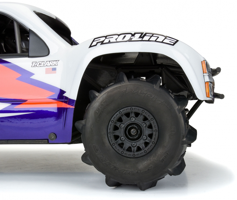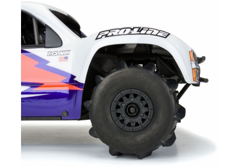 The Dumont Paddle SC tire is Pro-Line's most aggressive paddle tire—featuring oversized offset V-shaped lugs for unparalleled traction and roost. Molded in durable Z3 compound, each tire is pre-mounted on Raid SC wheels with a 17 mm removable hex (fit Mojave 6S or UDR frames). The kit includes foam inserts, both Mojave and UDR hex adapters, and M3 mounting hardware—so you're race-ready out of the box.