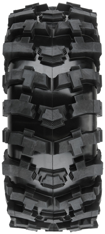 Coming in at a massive 7.85" tall x 3" wide, this is the most extreme SCX6™ tire from Pro-Line yet! Molded in our legendary G8 compound, all the details of this gnarly tire are captured in perfect 1/6 scale detail: from the Tread Biter™ cleats for added traction to the Mud Scoops for added cleaning power, to the Massive Sidebiters® and angled shoulder scallops for ultimate side grip. Symmetric directional tread pattern provides excellent traction and cleaning power as well.