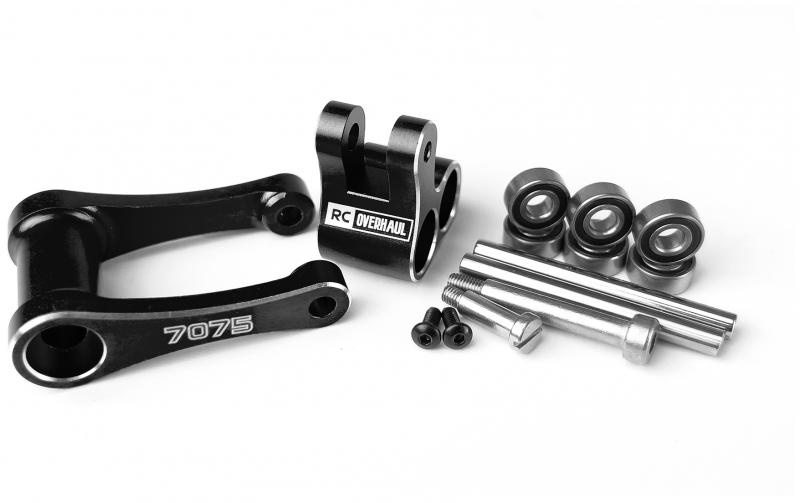 This 7075 aluminium Knuckle and Pull Rod offers better strength and durability over the stock plastic part for those pushing the limits with their Promoto-MX. It features six ball bearings which ensure smooth operation over the standard brass bushings. Anodized to offer an added level of durability and personalisation and to finish it off the 'RC Overhaul' logo is laser etched onto the part that adds a smart small detail that makes your bike stand out from the rest.