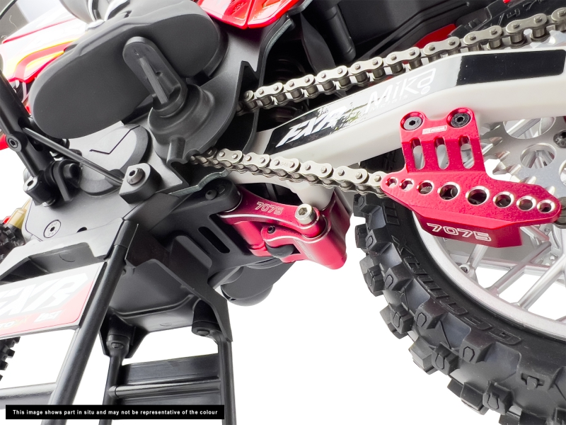 This 7075 aluminium Knuckle and Pull Rod offers better strength and durability over the stock plastic part for those pushing the limits with their Promoto-MX. It features six ball bearings which ensure smooth operation over the standard brass bushings. Anodized to offer an added level of durability and personalisation and to finish it off the 'RC Overhaul' logo is laser etched onto the part that adds a smart small detail that makes your bike stand out from the rest.