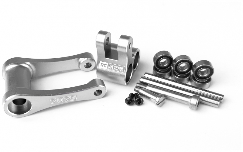 This 7075 aluminium Knuckle and Pull Rod offers better strength and durability over the stock plastic part for those pushing the limits with their Promoto-MX. It features six ball bearings which ensure smooth operation over the standard brass bushings. Anodized to offer an added level of durability and personalisation and to finish it off the 'RC Overhaul' logo is laser etched onto the part that adds a smart small detail that makes your bike stand out from the rest.