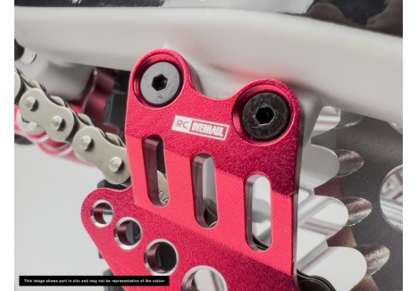 Swap out the stock moulded plastic chain guard for this beautifully machined 7075 aluminum that has been anodized. Two screws is all it takes to remove and fit this aluminium version of the guard making it a quick and easy upgrade to personalize your Promoto-MX. Finished off with the 'RC Overhaul' logo it is a small bit of bling that helps your bike to stand out from the rest.