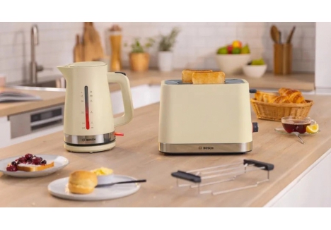 The Bosch TAT4M227GB 2 slice toaster cream is a compact and stylish breakfast appliance designed to deliver evenly browned toast and pastries with minimal effort. Finished in soft cream and built with BPA-free plastic, this toaster complements modern UK kitchens with a neutral aesthetic. With a detachable and foldable bun warmer, users can enjoy a wider variety of breakfast options—from croissants to bread rolls—without cluttering the countertop. The Bosch TAT4M227GB compact toaster with bun warmer combines thoughtful design with practical features, including variable browning control, automatic centring, and high lift for safe retrieval of smaller slices. Whether you're preparing a quick weekday breakfast or indulging in a weekend brunch, this toaster offers reliable performance and convenience.