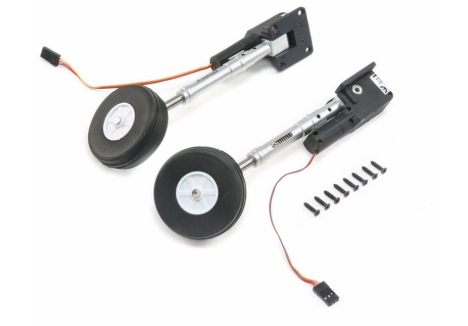 - Steerable nose wheel and electric retracts with shock-absorbing struts for operation from a variety of surfaces