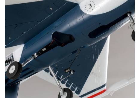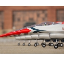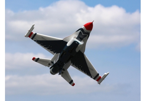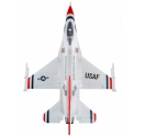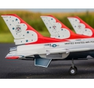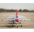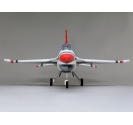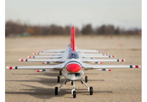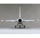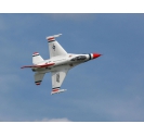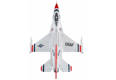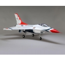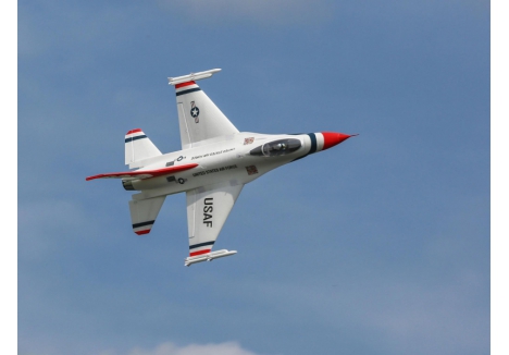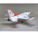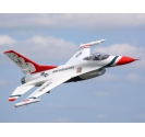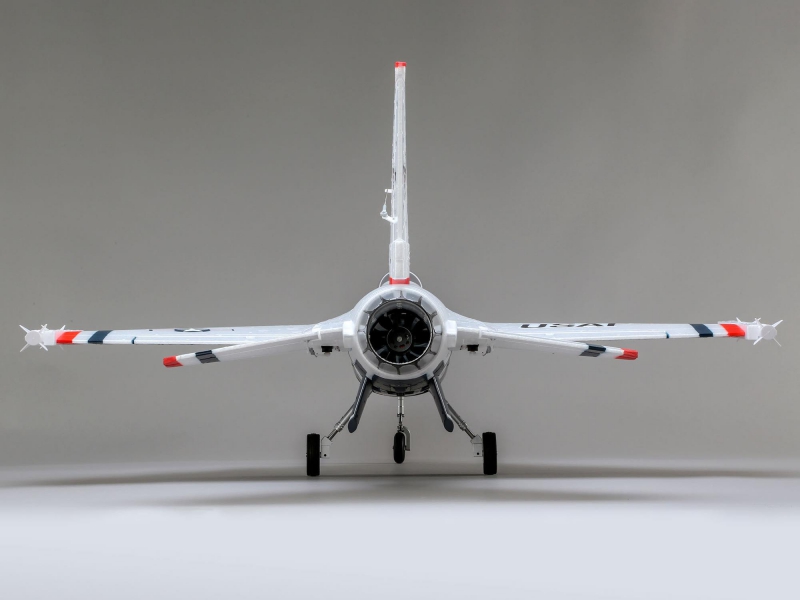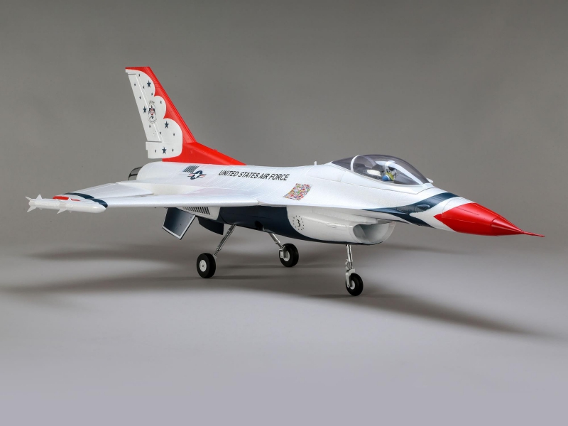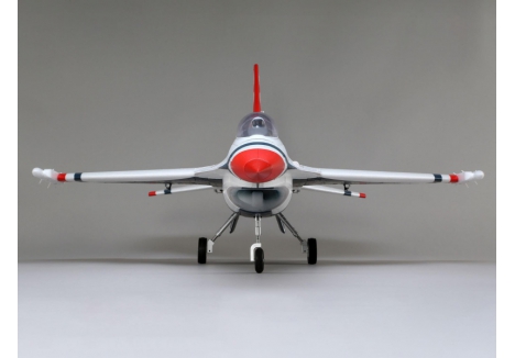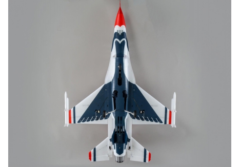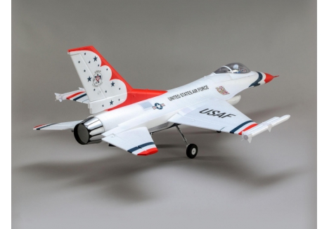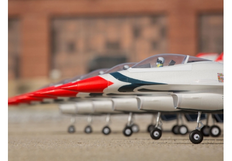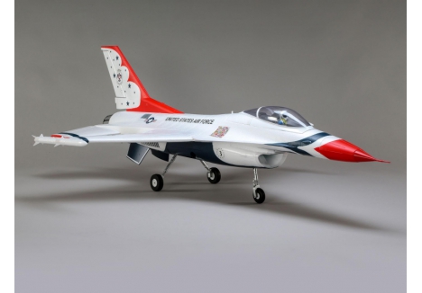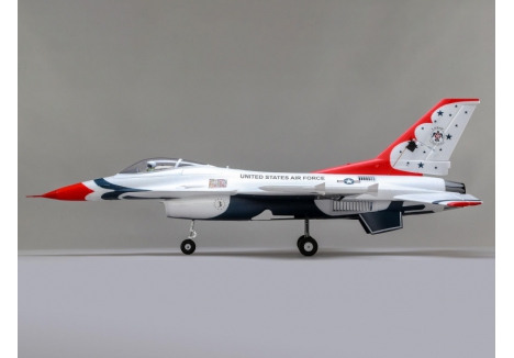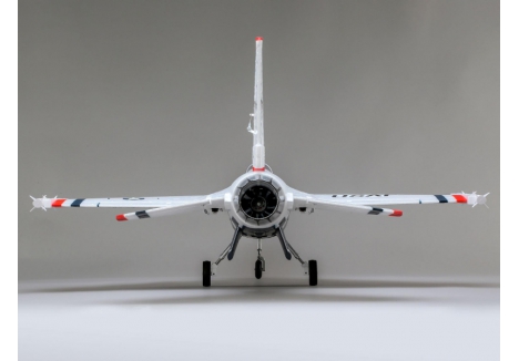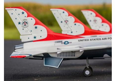 The E-flite® F-16 Thunderbirds 70mm EDF jet is a scale replica of the iconic aircraft flown by the U.S. Air Force Thunderbirds demonstration team. Like the full-scale airshow thriller, this F-16 has an incredibly wide performance envelope-from slow and stable high-alpha flight to amazing high-speed and vertical capabilities. At the core of this updated and upgraded version is a higher-performance 6S-compatible brushless motor plus an 85-amp ESC that are matched to a 12-blade fan to deliver an abundance of speed, thrust, and a turbine-like sound. Factory-installed electric retracts with shock-absorbing struts make it possible to take off from and land on a variety of surfaces, including manicured grass, while keeping ground handling smooth and delivering a realistic scale experience. The composite-reinforced EPO airframe is lightweight yet strong, and the digital, metal-geared servos plus ball-link equipped linkages provide precise control. And it all combines to deliver one of the easiest to fly, yet highest performance, most capable and feature-rich mid-sized F-16 models ever!