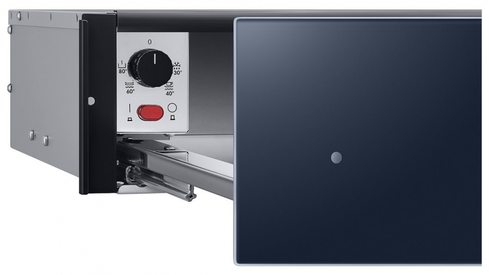Crafted to reflect the clean, modern aesthetics of European kitchen design, the samsung integrated warming drawer clean navy adds a touch of understated elegance to any space. The sleek Clean Navy satin glass front matches Samsung's premium appliance line, while the handle-free push & pull mechanism ensures a seamless, minimalist appearance that fits perfectly into contemporary cabinetry and kitchen units.