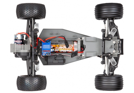 Traxxas Rustler® sits low and wide for maximum high-speed stability and cornering speed. The short wheelbase and lightweight chassis provide quick steering response for an agile feel not found on other trucks.