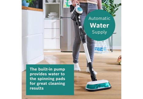 With up to 40 minutes of cleaning time, it’s perfect for tackling daily dirt across large rooms or multi-surface spaces. The included 2-in-1 Aqua mop head uses high-speed spin pads that rotate at 200 rpm, ensuring stubborn marks and dried spills are scrubbed away with ease. The vacuum delivers a consistent water supply for optimal shine without leaving wet patches, making it a bosch cordless vacuum cleaner white aqua solution you can rely on.