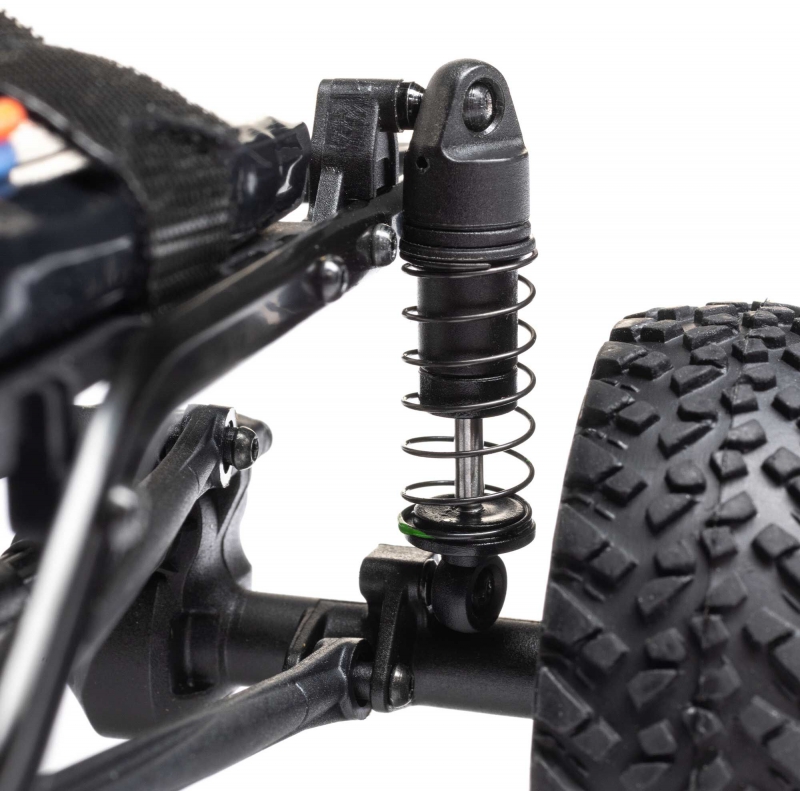- Oil-filled shocks – absorb terrain impacts for smooth suspension articulation