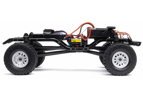 - Assembled SCX24 chassis, drivetrain, and suspension