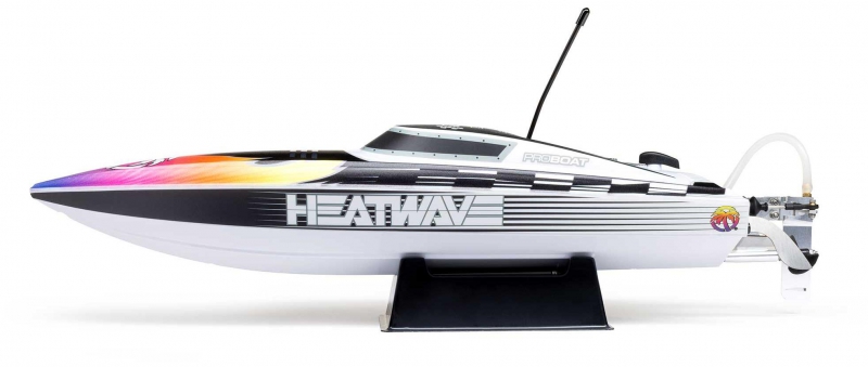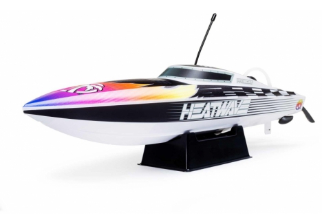 Pro Boat B-PRB08053T2 Recoil 2 18" RTR with 2950Kv brushless motor and 30A ESC is a compact, high-performance RC boat designed for hobbyists who want speed, style, and simplicity in one ready-to-run package. Finished in the officially licensed Heatwave livery inspired by Apollo Sunglasses: Blurr Customs, this mini deep-V boat combines aggressive aesthetics with proven engineering. With a factory-installed Spektrum brushless power system, water-cooled electronics, and a self-righting hull, the Recoil 2 18" delivers speeds over 25 MPH and a runtime of approximately seven minutes. Its lightweight ABS hull, breakaway rudder, and adjustable metal hardware make it durable and responsive, while the included Smart battery and USB-C charger simplify power management. Whether you're new to RC boating or looking for a portable thrill machine, this model offers a complete experience straight out of the box.