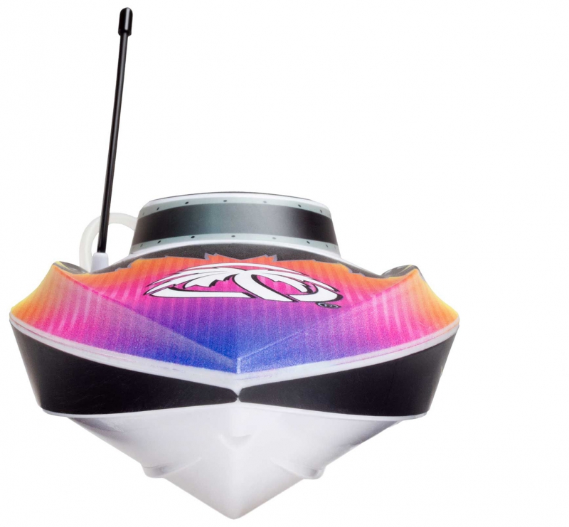 The Heatwave livery on the Recoil 2 18" RTR with 25+ MPH top speed and 7-minute runtime adds visual impact and brand recognition to the boat. Inspired by Apollo Sunglasses: Blurr Customs, the graphics give the boat a bold, custom look that stands out on the water. The included composite stand serves multiple purposes: it supports the boat during display, provides a stable base for maintenance, and can be flipped over to function as a parts tray. This dual-use accessory adds convenience and helps keep tools and components organized during setup or repair.