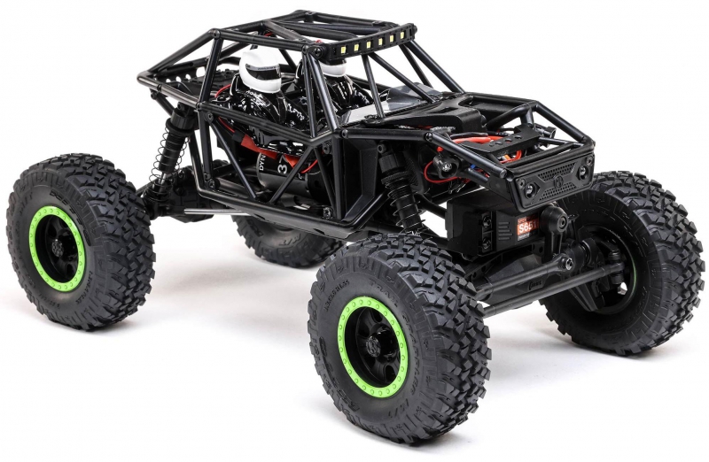 Trail adventures don’t stop when the sun sets, and the Axial Unlimited Trail Buggy with portal axles is ready for night crawling with its integrated LED lighting system. Headlights, a roof-mounted light bar, and forward-facing rock lights illuminate the path ahead, enhancing both visibility and scale realism. These lights are mounted within the licensed body panels, which also feature detailed livery and molded driver figures for an immersive experience.