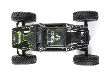 The 4-link suspension system on the Axial Capra 1/18 RTR with battery and charger is engineered for maximum articulation and durability. Stainless steel lower links resist bending and wear, while solid axle construction front and rear ensures consistent movement across uneven terrain. Coil-over plastic shocks with a wide travel range absorb impacts and maintain stability, allowing the buggy to flex and climb with ease.