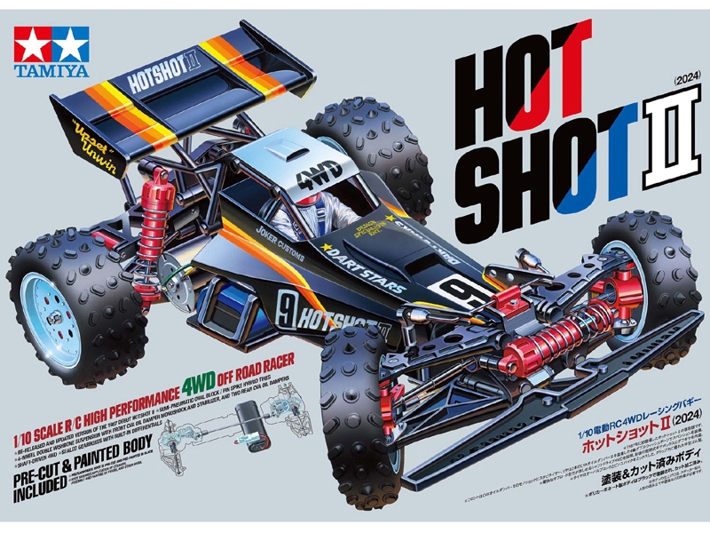 - Product Type: Tamiya Hotshot II TAM58737 4WD buggy, 1/10 scale Tamiya Hotshot II R/C car, Tamiya Hotshot II (2024) R/C buggy TAM58737, Shaft-driven 4WD Tamiya Hotshot II buggy, CVA oil dampers Hotshot II R/C car