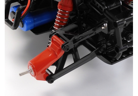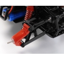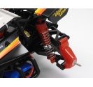 The CVA oil dampers Hotshot II R/C car setup includes three dampers—one at the front and two at the rear—paired with a 4-wheel independent double wishbone suspension. This arrangement allows each wheel to respond individually to terrain changes, reducing bounce and improving grip. The front monoshock suspension uses a single CVA oil damper to control roll, while the rear employs H-shaped arms and dog bone drive shafts for durability and articulation.