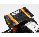 Yes, the pre-painted polycarbonate body Hotshot II is fully pre-cut and finished in sleek black, eliminating the need for painting or trimming. The rear wing is also pre-painted and cut, allowing users to focus on assembly and performance tuning. The included sticker set adds vibrant orange and yellow race graphics, enhancing the visual appeal and authenticity of the build.