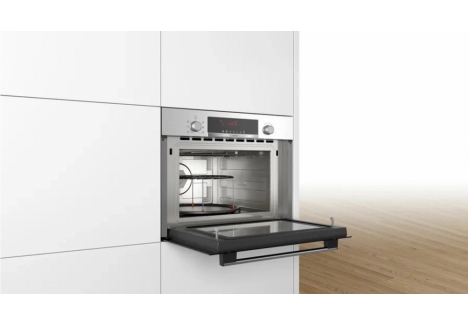 The built?in stainless steel microwave Bosch design ensures seamless integration into your kitchen cabinetry. With clean lines and a modern stainless steel finish, this appliance complements both contemporary and classic kitchen styles. The intuitive LED display with rotary knob makes it easy to select programmes, adjust settings, and monitor cooking progress at a glance. Whether you are upgrading your current kitchen or designing a new one, this microwave blends practicality with premium design — a perfect choice for those seeking affordable Bosch built?in microwave with grill function options that look as good as they perform.