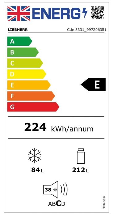 • Energy Efficiency: Class E – low consumption at 224 kWh/year