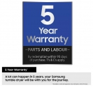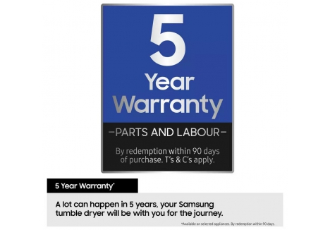 With a 52kg net weight, the stainless steel drum and stable build ensure longevity and low vibration. The diamond drum pattern is gentle on fabrics, while the intuitive LED panel display offers at-a-glance settings. Designed for peace of mind, this model includes a 5-year warranty when registered — further reinforcing its place as an affordable samsung heat pump dryer with smart drying.