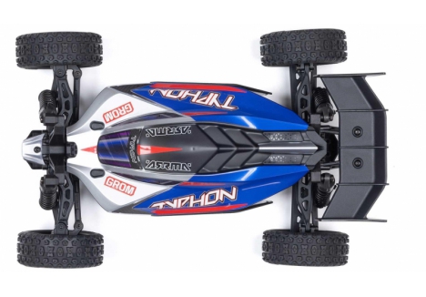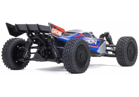 - Product Type: ARRMA TYPHON GROM C-ARA2106T1, ARRMA TYPHON GROM blue mini RC buggy C-ARA2106T1, ARRMA TYPHON GROM C-ARA2106T1 small scale brushed buggy blue RTR, ARRMA TYPHON GROM blue RTR with Spektrum SLT2 radio and IC2 battery, ARRMA TYPHON GROM blue buggy with composite chassis and high downforce wing, ARRMA TYPHON GROM blue with MEGA 380 motor and clipless body mount