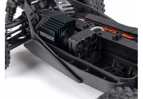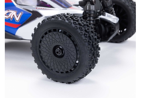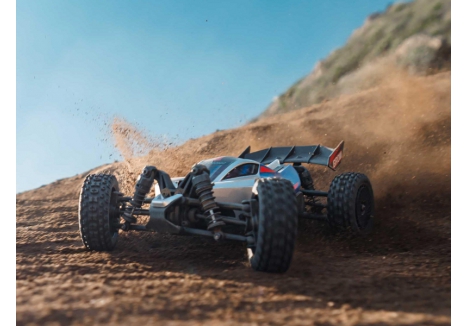 One of the most user-friendly features of the ARRMA TYPHON GROM blue with MEGA 380 motor and clipless body mount is its innovative clipless body attachment system. Unlike traditional RC models that rely on small, fiddly clips, this buggy uses a secure press-and-release mechanism that allows for fast and hassle-free body removal and installation. This design is particularly beneficial for younger drivers or those new to RC vehicles, as it eliminates the frustration of lost or difficult-to-handle clips. The clipless mount also enhances the overall aesthetic by maintaining a clean, streamlined appearance. Combined with the factory-finished body and high downforce wing, the buggy delivers both form and function in equal measure.