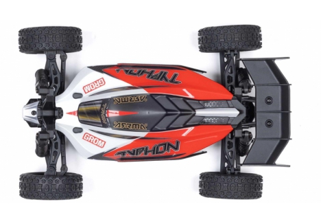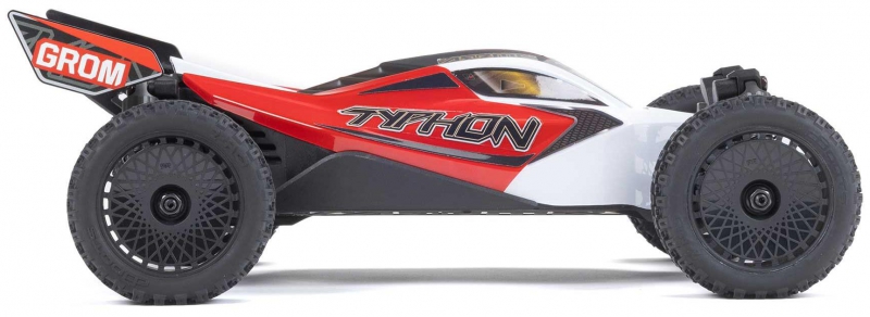 - Product Type: ARRMA TYPHON GROM C-ARA2106T2, ARRMA TYPHON GROM red mini RC buggy C-ARA2106T2 with battery, ARRMA TYPHON GROM C-ARA2106T2 small scale brushed buggy red RTR, ARRMA TYPHON GROM red RTR with Spektrum SLT2 radio and IC2 battery, ARRMA TYPHON GROM red buggy with composite chassis and high downforce wing, ARRMA 1/14 red buggy with MEGA 380 motor and clipless body mount