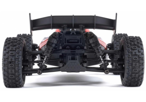 The ARRMA TYPHON GROM C-ARA2106T2 small scale brushed buggy red RTR is designed to go where larger RC vehicles can’t. Its compact dimensions allow for bashing in tight spaces, while its rugged build ensures it can handle rough terrain with ease. The enclosed metal gear drivetrain delivers consistent power to all four wheels, and the composite chassis absorbs impacts without compromising performance. This combination of portability and toughness makes the buggy a reliable choice for drivers who want to enjoy off-road action anywhere, anytime.