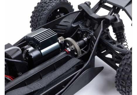 The ARRMA 1/14 red buggy with MEGA 380 motor and clipless body mount features a user-friendly clipless body attachment system. This quick-release mechanism eliminates the need for small clips, making body removal and installation fast and hassle-free. Ideal for younger users or those new to RC vehicles, the clipless design enhances convenience without sacrificing security. Combined with the factory-finished body and aerodynamic wing, the buggy offers a sleek look and practical functionality.