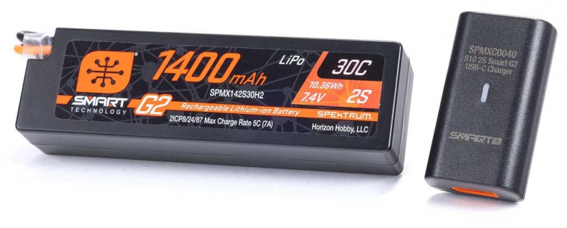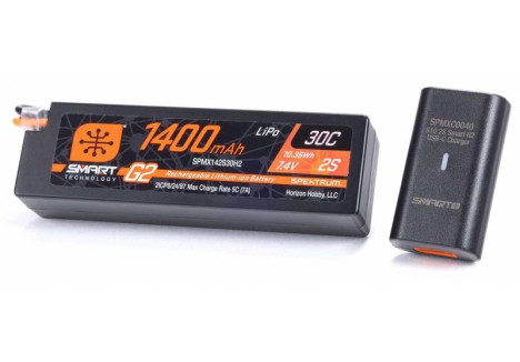 - Spektrum Smart 7.4V 1400mAh 2S 30C Hard Case LiPo Battery with IC2 Connector