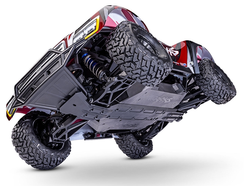 Superior Protection Maxx Slash s skid plates enclose the centre driveshaft inside a rigid backbone for superior protection. The ultra-thick skid plates interlock for a clean appearance and snag-free performance in the wild. The rugged skid plates absorb punishment to protect critical bulkheads and driveline components.