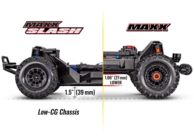 Rigid Low-CG Chassis Traxxas engineers relied on years of real-world testing with the nearly indestructible Maxx as inspiration for Maxx Slash s revolutionary chassis design. Hex-reinforcements cover nearly every flat surface for exceptional rigidity. An ultra-tough composite structure of interlocking components allows the chassis to absorb massive shocks while retaining its tight tolerances.