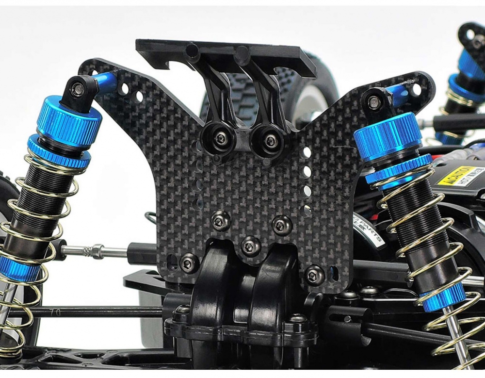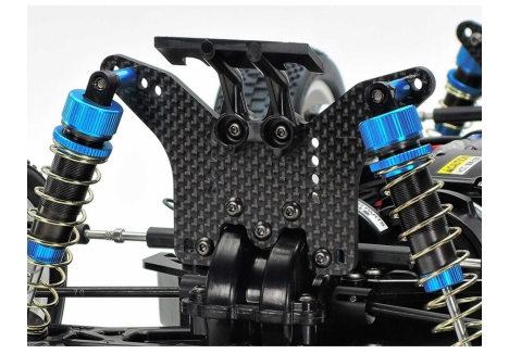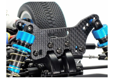 - Carbon fiber damper stays – 3mm thick front and rear mounts for flexible suspension geometry
