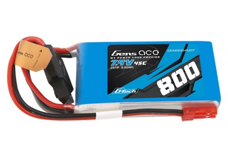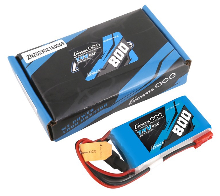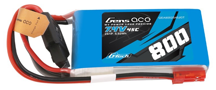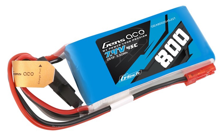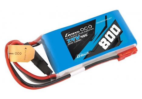 Gens Ace G-Tech LIPO 800mAh 7.4V 2S 45C Lipo battery is one of the top rank battery corporations with deep research and manufacturing on NIMH, LI-PO, LI-FE by the effort of 200 professional engineers and technicians with 20 years exquisite battery technology. The Gens Ace brand holds the traditional concept of "excellent quality", "Optimization" & "Priority" on Sales & Services. All batteries are tailored for various scales of the RC Models such as electronic cars, aero planes, vessels and also other models, toys, electric tools, electric bikes, electric autos, digital products etc