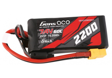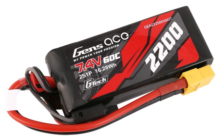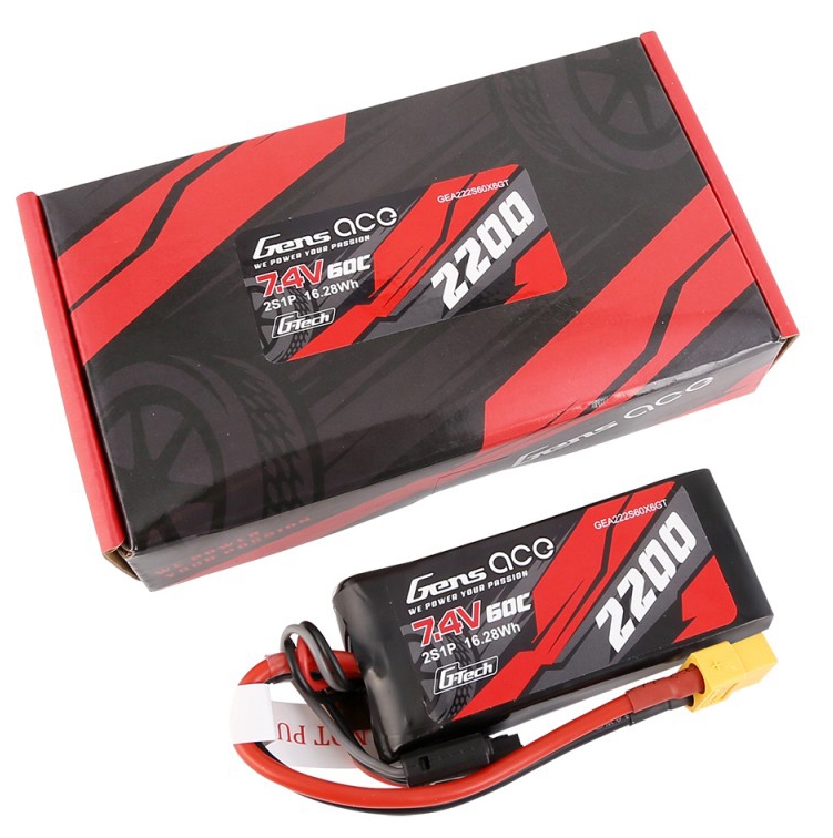 Gens ace lipo 2200mAh 2S1P 60C lipo battery pack has Remarkable stacking technology which enables single-cell capacities of 2200mAh. With High discharge performance and high energy density, Gens ace Gens ace G-Tech 2200mAh 7.4V 50C 2S1P TRX Lipo Battery is suitable for all Traxxas 1:16 VXL Models: such as Revo, Fiesta, Boss 302 Mustang.