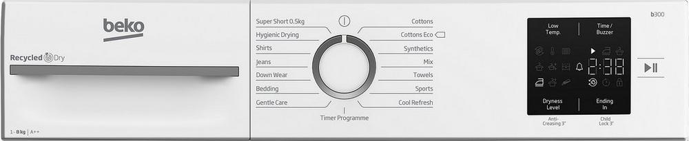 The beko bmn3t3823w tumble dryer offers an extensive range of drying cycles, including Cottons, Synthetics, Mix, Towel, Bedding, Outdoor/Sports, and more. Whether you need to quickly freshen up garments with the Super Short cycle or ensure thorough drying with the Hygiene programme, this dryer adapts to your needs. You can also customise your drying with timed options and delayed start for greater flexibility throughout the day.