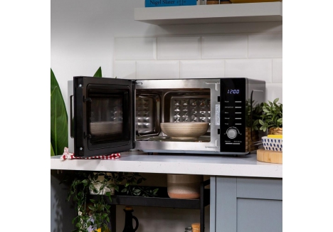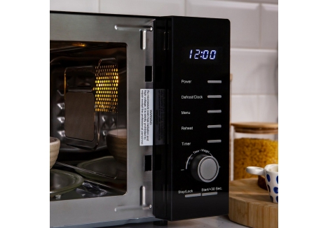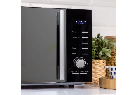 The Russell Hobbs RHM2348B 23L digital microwave is designed for convenience and versatility. Its spacious 23-litre cavity accommodates standard dinner plates and cookware, making it suitable for small families or busy individuals. The digital timer and clock display allow precise control over cooking duration, while the auto programmes take the guesswork out of meal prep. Whether you're warming soup, cooking vegetables, or defrosting meat, this microwave adapts to your needs with ease.