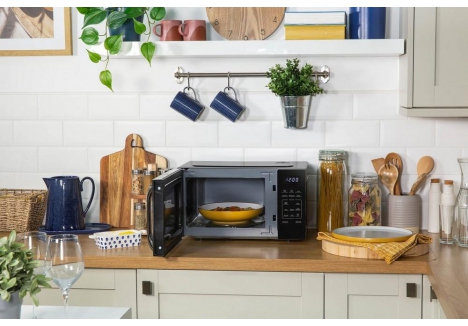 The Russell Hobbs compact microwave with 255mm turntable and defrost offers reliable performance in a streamlined form. The 255mm turntable rotates food during operation, promoting even heat distribution and eliminating cold spots. This ensures that meals are thoroughly cooked or reheated, regardless of placement within the cavity. The defrost function is equally effective, safely thawing frozen items without overheating or compromising texture. These features are housed within a compact frame that fits comfortably on most kitchen surfaces, making the microwave an ideal choice for apartments, dorms, and secondary kitchen setups.