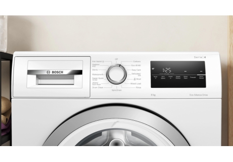 Rated A for energy efficiency, this washer helps reduce household energy consumption without compromising performance. Thanks to Bosch’s water management system and smart load detection, every wash uses only what’s needed – saving both water and electricity. For anyone looking for an energy efficient white washing machine 8kg, this model ticks all the boxes with its sustainable engineering and thoughtful design.
