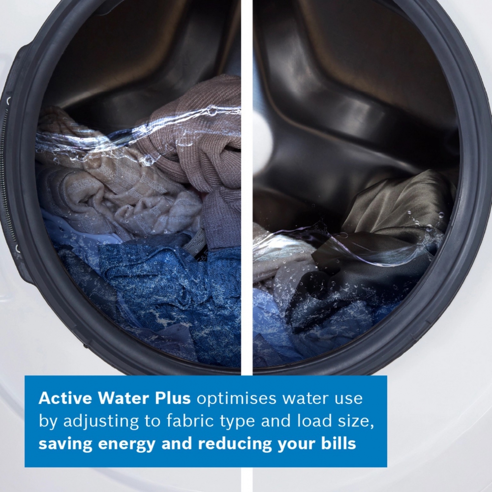 Fitted with Bosch’s advanced EcoSilence Drive™, this washer combines quiet operation with impressive longevity. The brushless motor technology reduces noise and friction, offering a much smoother cycle – ideal for open-plan homes or night-time washing. For added assurance, the motor comes with a 10-year parts warranty, making this one of the most quiet washing machine with eco mode and fast spin solutions available for busy families.