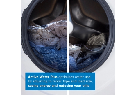 The built-in SpeedPerfect function delivers thorough cleaning in less time – cutting wash cycles by up to 65%* without sacrificing cleanliness. It can be used with most programs and fabric types, making it a valuable feature for busy days. When you’re in a rush or want a quick refresh for lightly soiled clothes, this bosch freestanding washing machine 8kg ensures a spotless outcome in record time.