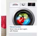 Equipped with Bosch’s proprietary Anti Vibration™ sidewall design, the machine remains remarkably stable, even during fast spin cycles. Combined with sophisticated noise insulation, this model maintains peaceful operation throughout. It’s a standout choice for those seeking a freestanding washer with anti-vibration and reload function that won’t disrupt your home environment.